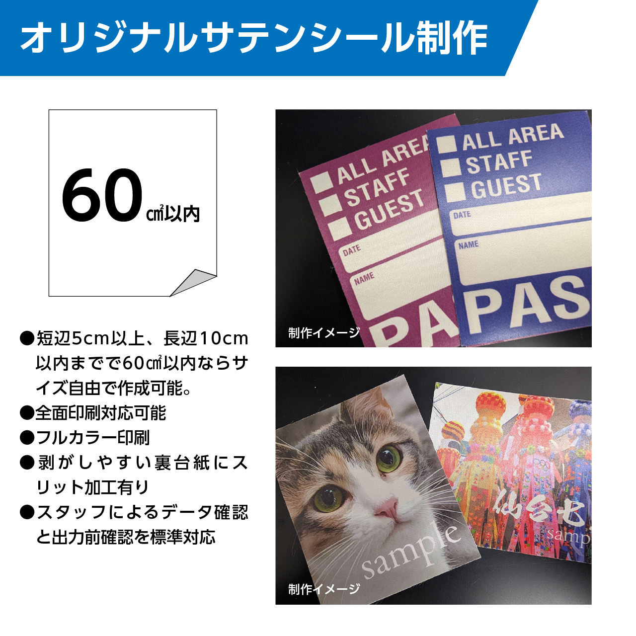お客様の作ったデータでパスシール(サテンタック)をご注文いただけるページです。